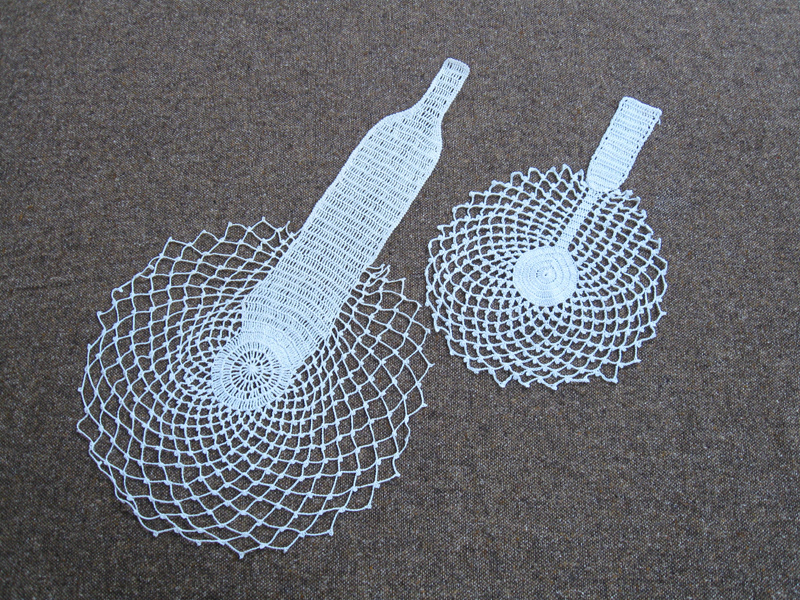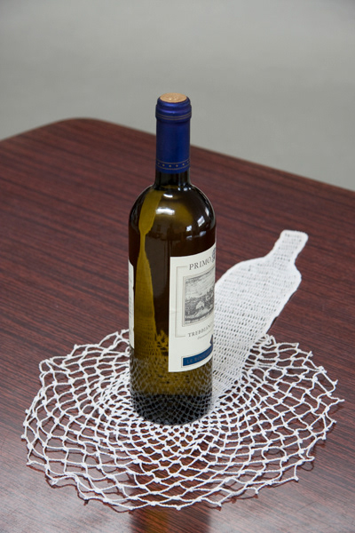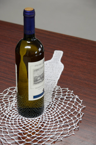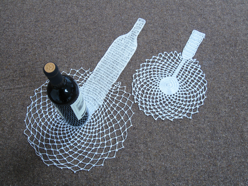 it is a coaster that recalls the concept of “shape memory”, which is the peculiarity of some metals capable of going back to their original shape after being physically modified. These crochet coasters have got the shadow of the object previously held.