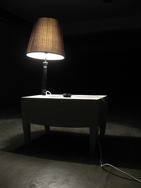 The concrete hides every thing. piece of furniture in advanced concrete material with lamp drowned in it