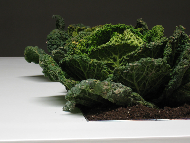 A kitchen table that allows you to grow and pick your own vegetables and spices directly from the table and season your meals.